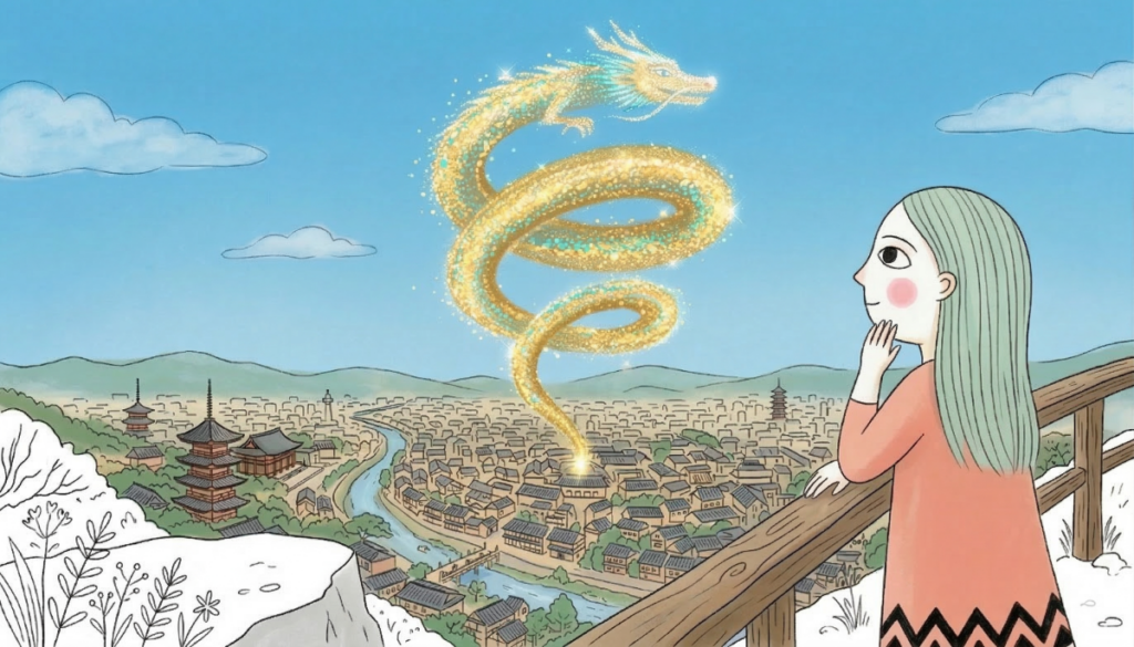 この調整が終わると、大きな龍が京都の上空を飛んでいくのが見えました。